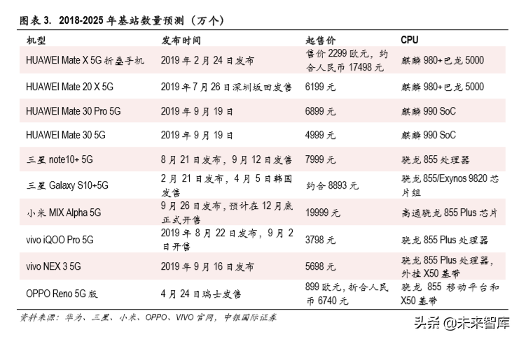 2019年 5G手机以旗舰机为主,定价在 5,000元以上。 8月 22日,vivo发布 iQOO Pro 5G手机,定于 9 月 2日开售,起售价 3,789元,首次将 5G手机拉入 3,000元档。预计到 2020年年中,5G手机价格将 向中端机型渗透,价格进入 3,000元档;到 2020年底,5G智能手机将向低端机型渗透,价格下探至 千元档。根据 Counterpoint Research、赛诺报告,预计 2020年中国 5G 智能手机市场出货量将达到数千 万到亿级。