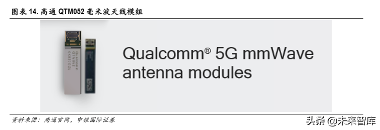 5G毫米波频段,手机天线设计将从单天线且波束固定的天线设计转变为天线阵列的设计,并且是可 波束赋形的阵列设计,而 AiP 封装天线将成为 5G 毫米波天线的主要实现方式。AiP 封装天线即采用 SIP技术将天线阵列与芯片封装到同一封装体中。高通于 2018年 7月 23日宣布推出全球首款面向智 能手机和其他移动终端的全集成 5G新空口(5G NR)毫米波天线模组 QTM052,并预计配置 QTM052 毫米波天线模组的终端将最早于 2019年上半年推向市场。2019年 2月,高通又发表第二代 AiP产品 QTM525。日月光、安靠、长电科技等封测厂也在开发 AiP技术。长电科技参股子公司中芯长电 2019 年 3月发布 5G毫米波天线芯片晶圆级集成封装技术 SmartAiP技术,与硕贝德合作基于 SmartAiP技术 5G毫米波天线模块实现 24GHz和 43GHz超宽频信号收发。预计 AiP天线封装有望成为 5G毫米波天线 的主流封装方式,相关产业链有望受益。