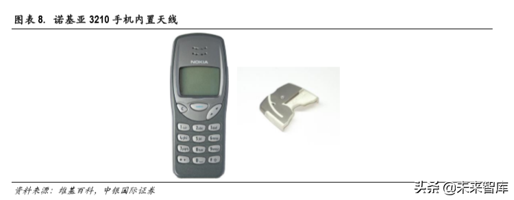 1997年,摩托罗拉发布首个双频 GSM手机 mr601,可以支持 GSM900和 GSM1800双频,因此有螺旋和 鞭状两根天线。 1999年,诺基亚推出 Nokia3210,采用了完全内置的天线,可以支持 GSM900和 GSM1800 双频。