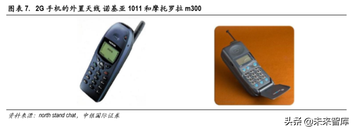 20世纪 90年代的 2G手机天线则有两个天线单极和螺旋,只能支持单个频段。诺基亚 1011和摩托罗 拉 M300只能支持单个频段的通信。